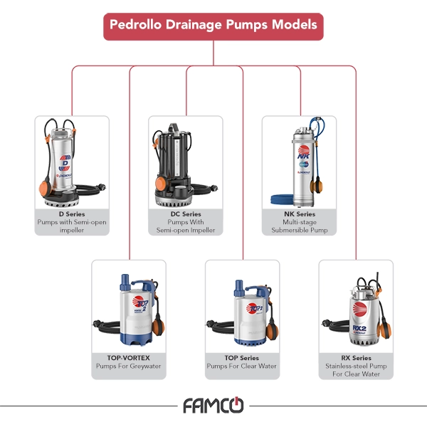 Pedrollo manufactures several drainage pump lines suited for distinct performance requirements: