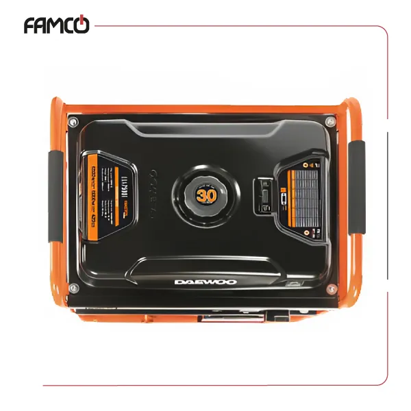 To reach Daewoo safety goals, it has features like low-oil shutdown and a sturdy frame for durability. The starting system combines manual and electric options, with a built-in starter battery. Its dimensions are 680 mm in length, 520 mm in width, and 540 mm in height, with a weight of 81.3 kg, a portable yet sturdy generator.