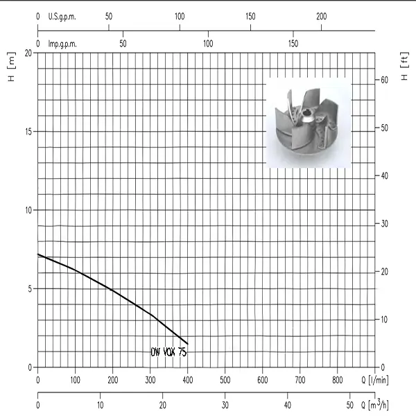 Ebara 0.75 HP Wastewater Lift Pump DW VOX 75 Performance Curve