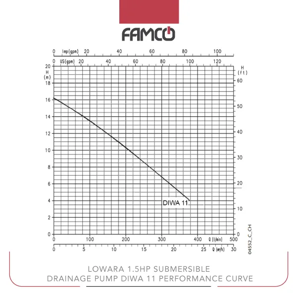 Lowara 1.5 HP Submersible Drainage Pump DIWA 11 Performance Data