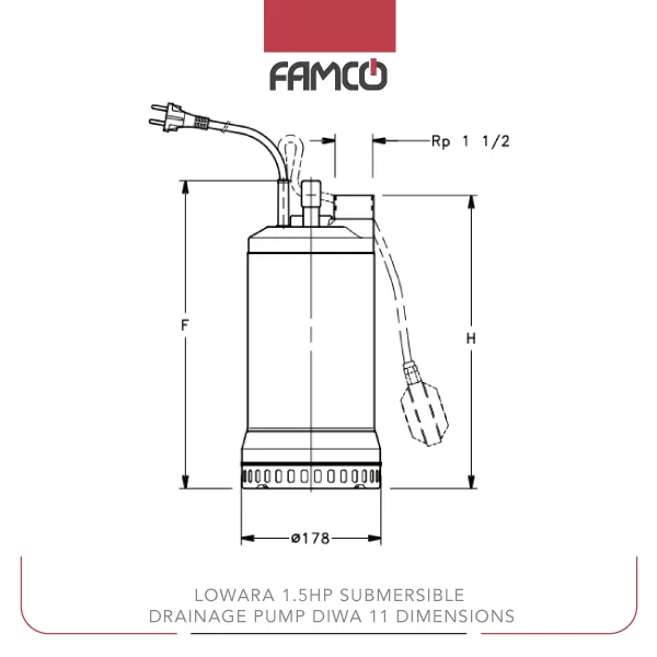 Lowara 1.5 HP Submersible Drainage Pump DIWA 11 Specifications