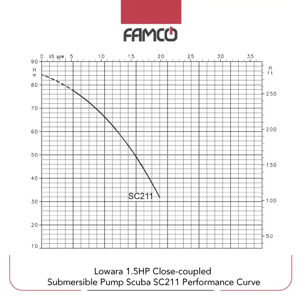 Lowara 1.5HP Close-coupled Submersible Drainage Pump Scuba SC211 Performance Data