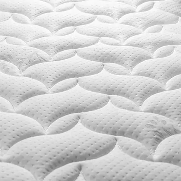This mattress features a quilted design made from a triple-layer circular knit fabric. The anti-allergy fibers used in its construction are ideal for allergy sufferers. This Roya mattress has multiple layers of foam, each with varying densities, which helps provide optimal comfort. The mattress is designed to allow easy airflow through its layers, promoting breathability and temperature regulation.