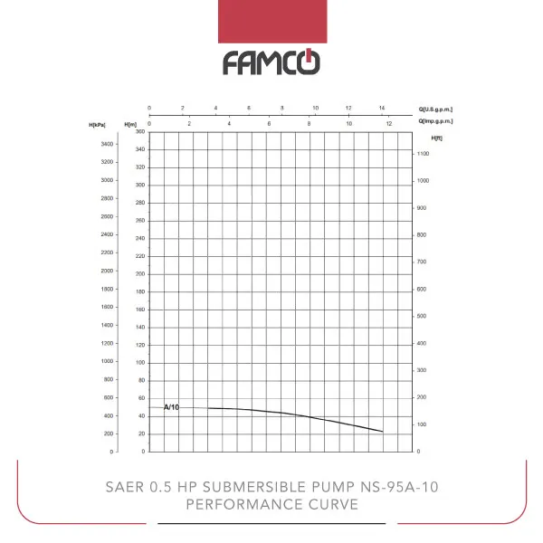 Saer 0.5 HP Submersible Pump NS-95A/10 Performance Data