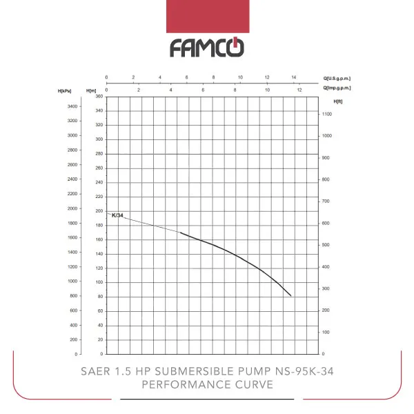 Saer 1.5 HP Submersible Pump NS-95K/34 Performance Data