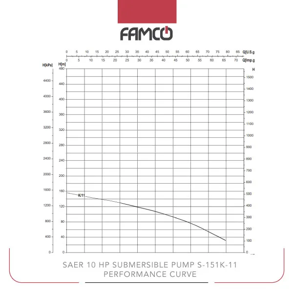 Saer 10 HP Submersible Pump S-151K/11 Performance Data