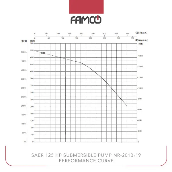 Saer 125 HP Submersible Pump NR-201B/19 Performance Data