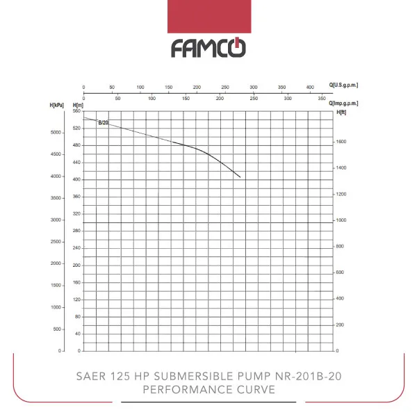 Saer 125 HP Submersible Pump NR-201B/20 Performance Data