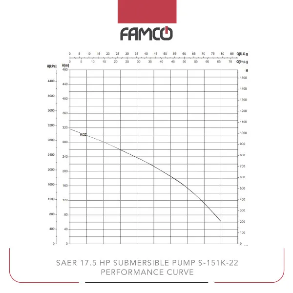 Saer 17.5 HP Submersible Pump S-151K/22 Performance Data