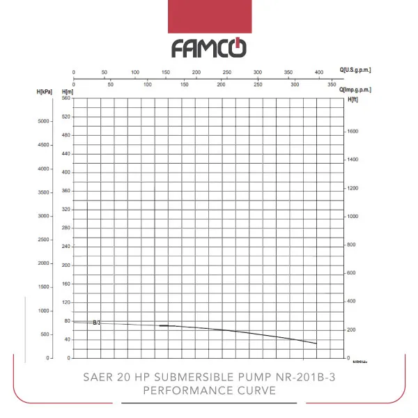 Saer 20 HP Submersible Pump NR-201B/3 Performance Data