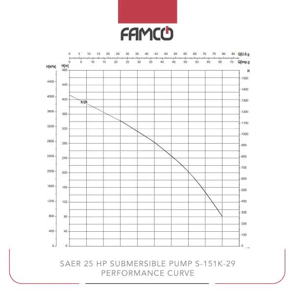 Saer 25 HP Submersible Pump S-151K/29 Performance Data