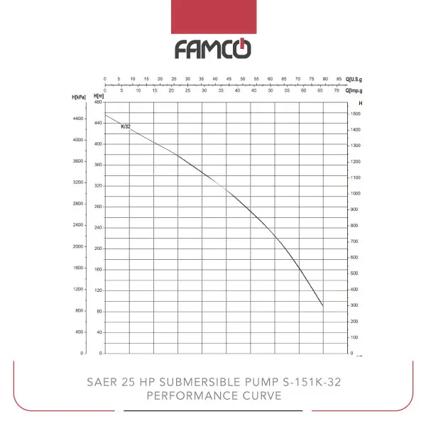 Saer 25 HP Submersible Pump S-151K/32 Performance Data