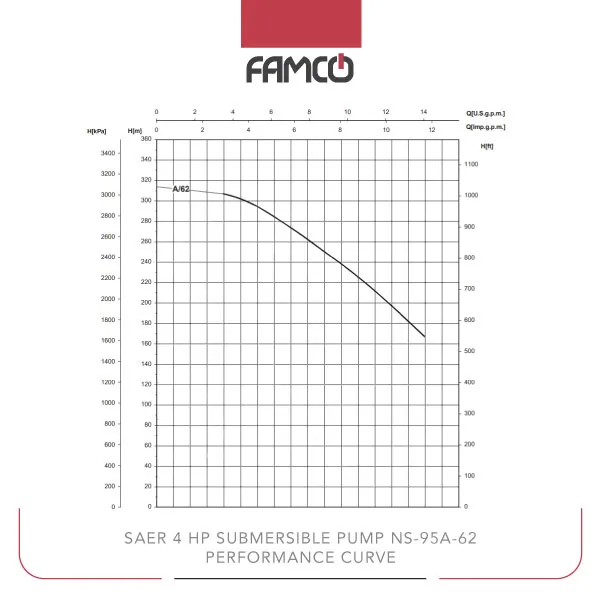 Saer 4 HP Submersible Pump NS-95A/62 Performance Data