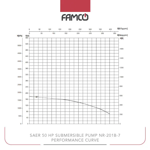 Saer 50 HP Submersible Pump NR-201B/7 Specifications