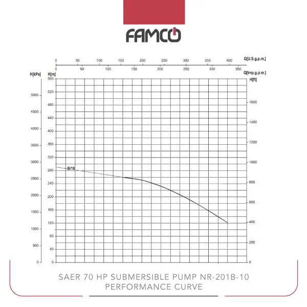 Saer 70 HP Submersible Pump NR-201B/10 Performance Data