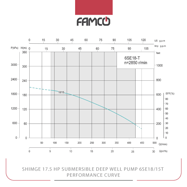 Shimge 17.5 HP Submersible Deep Well Pump 6SE18/15T Performance Data