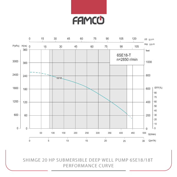 Shimge 20 HP Submersible Deep Well Pump 6SE18/18T Performance Curve