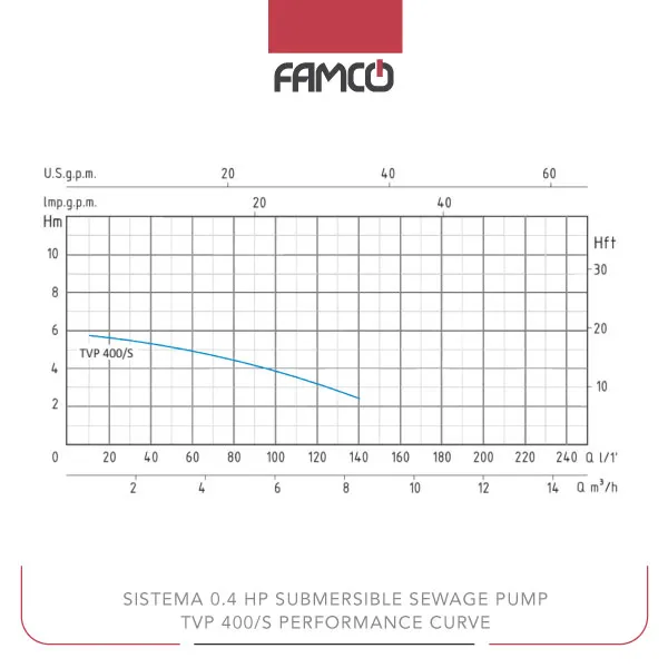 Sistema 0.4 HP Submersible Sewage Pump TVP 400/S Performance Data