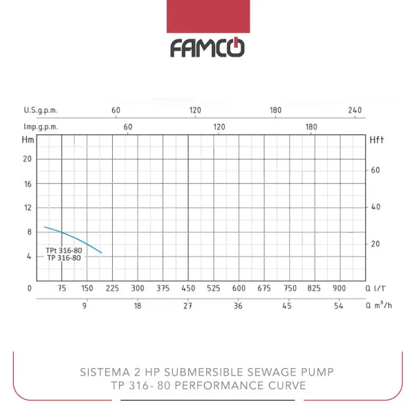 Sistema 0.8 HP Submersible Sewage Pump TP 316-80 Performance Data
