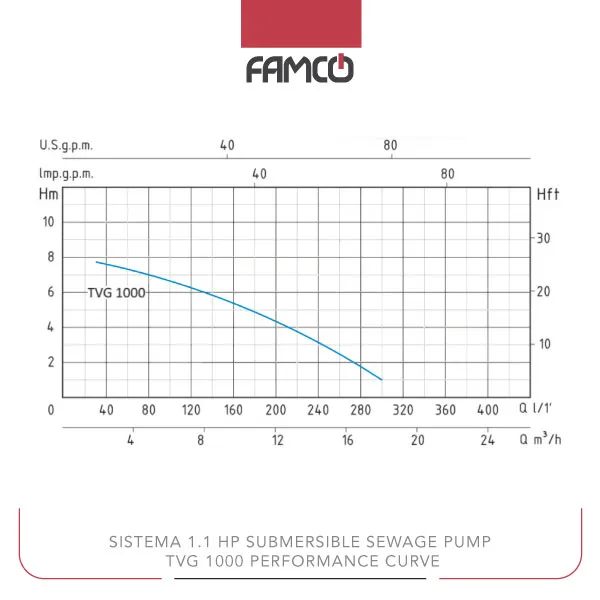 Sistema 1.1 HP Submersible Sewage Pump TVG1000 Performance Data