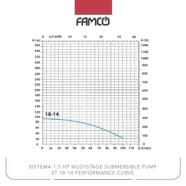 Sistema 1.5 HP Multistage Submersible Pump ST 18-14 Performance Data