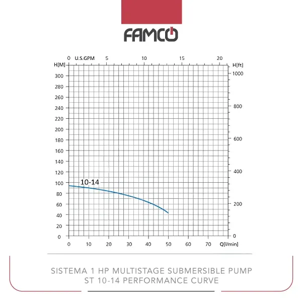 Sistema 1 HP Multistage Submersible Pump ST 10-14 Performance Data