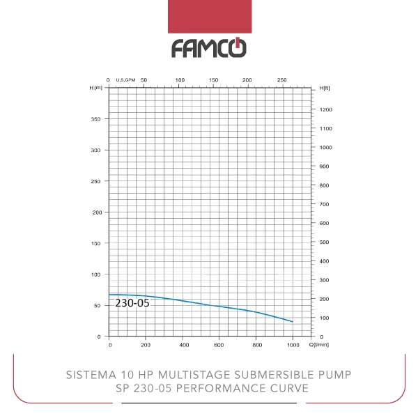 Sistema 10 HP Multistage Submersible Pump SP 230-05 Perormance Data