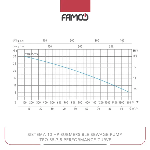 Sistema 10 HP Submersible Sewage Pump TPQ 85-7.5 Perforamnce Data