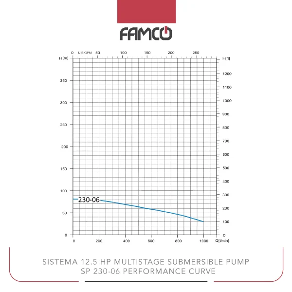 Sistema 12.5 HP Multistage Submersible Pump SP 230-06 Performance Data