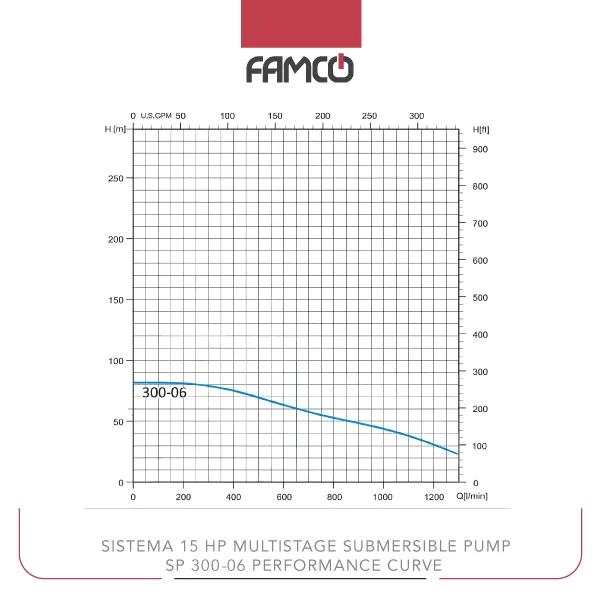 Sistema 15 HP Multistage Submersible Pump SP 300-06 Performance Data