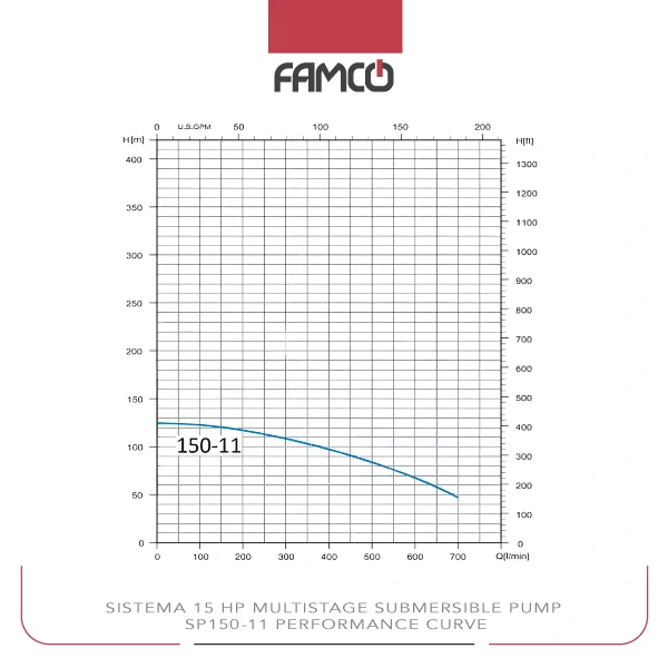 Sistema 15 HP Multistage Submersible Water Pump SP 150-11 Performance Curve