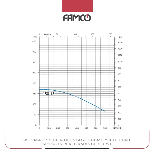 Sistema 17.5 HP Multistage Submersible Water Pump SP 150-15 Performance Data