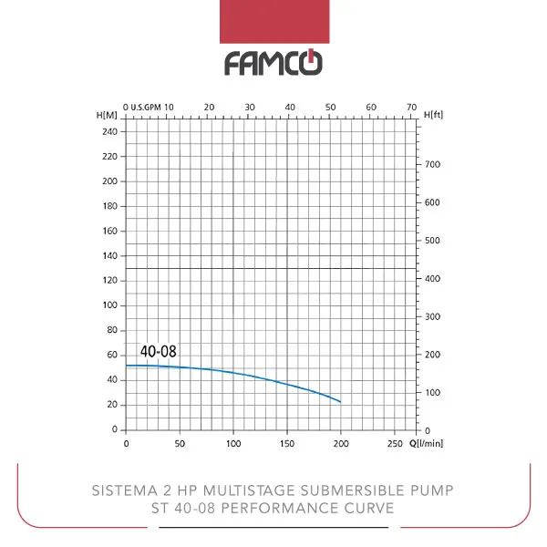 Sistema 2 HP Multistage Submersible Pump ST 40-08 Performance Data