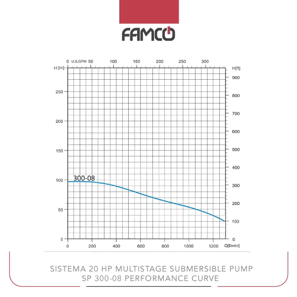 Sistema 20 HP Multistage Submersible Pump SP 300-08 Performance Data