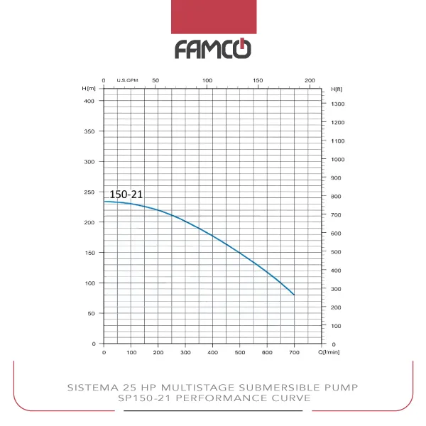 Sistema 25 HP Multistage Submersible Pump SP 150-21 Performance Data