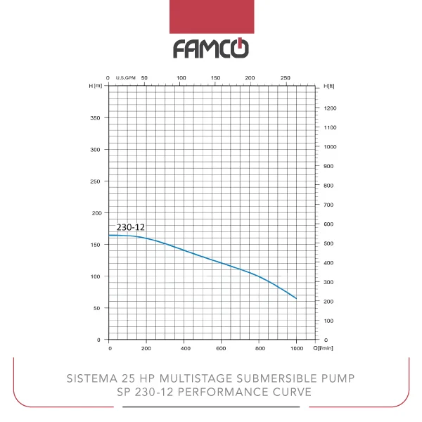 Sistema 25 HP Multistage Submersible Pump SP 230-12 Performance Data