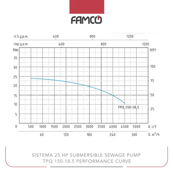 Sistema 25 HP Submersible Sewage Pump TPQ 150-18.5 Performance Data