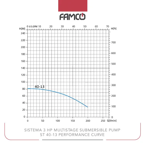 Sistema 3 HP Multistage Submersible Pump ST 40-13 Performance Data