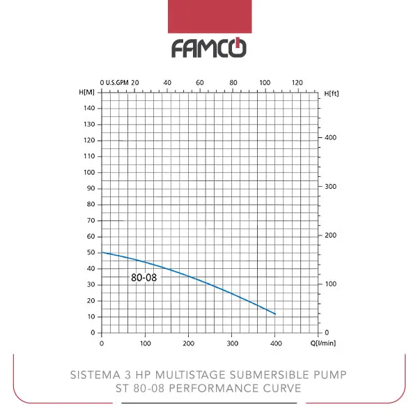 Sistema 3 HP Multistage Submersible Pump ST 80-08 Performance Data