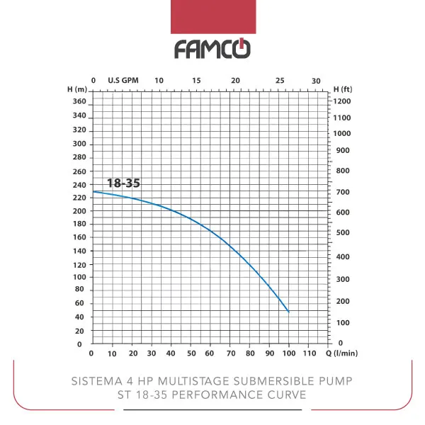 Sistema 4 HP Multistage Submersible Pump ST 18-35 Performance Data