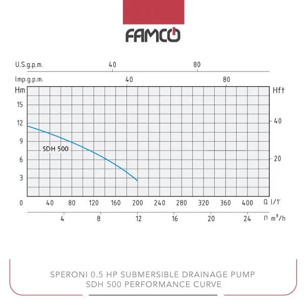 Speroni 0.5 HP Submersible Drainage Pump SDH 500 Performance Data