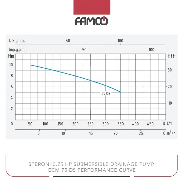 Speroni 0.75 HP Submersible Drainage Pump ECM 75 DS Performance Data
