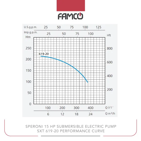 Speroni 15 HP Submersible Electric Pump SXT 619-20 Performance Data