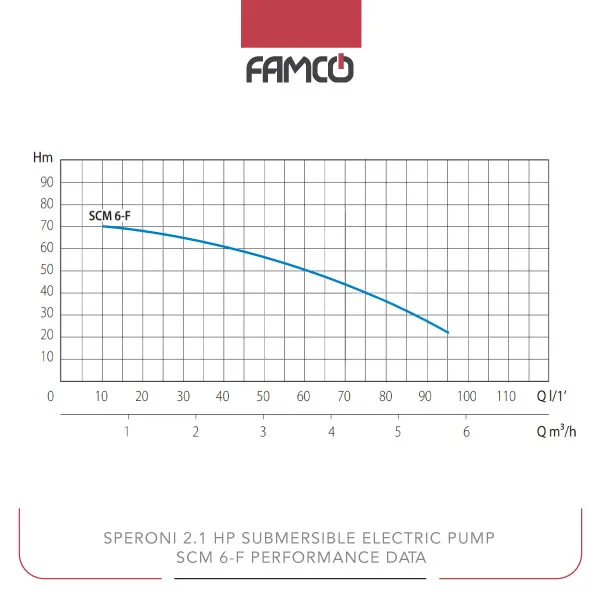 Speroni 2.1 HP Submersible Electric Pump SCM 6-F Performance Data