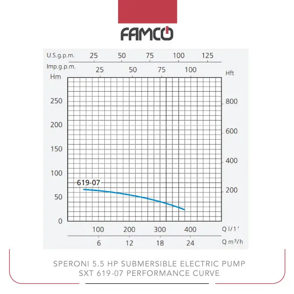 Speroni 5.5 HP Submersible Electric Pump SXT 619-07 Performance Data