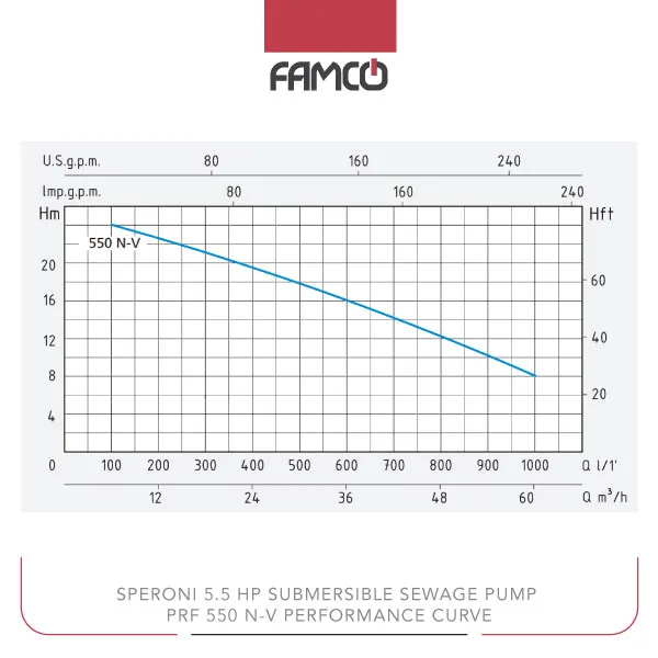 Speroni 5.5 HP Submersible Sewage Pump PRF 550 N-V Performance Curve