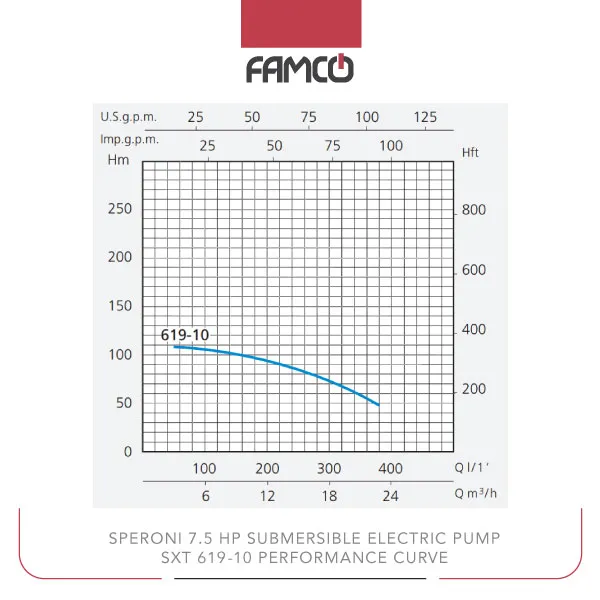 Speroni 7.5 HP Submersible Electric Pump SXT 619-10 Performance Data