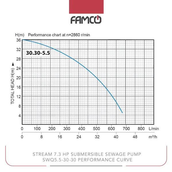 Stream 7.3 HP Submersible Sewage Pump SWQ30-30-5.5 Performance Curve